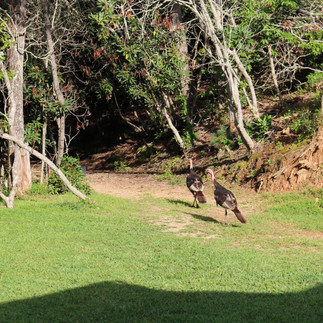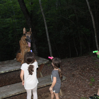 We got to our site and set up, it was beautiful there! They had small hiking trails on their property that we could walk around all day. They also had a lovely gazebo, chickens, fawns, ballerina geese, wild turkeys and deer that came down off the mountain each evening for feeding. They have a little trail called the enchanted forest that the girls just died for, we had to walk it every night to see if we could see the fairies (the fireflies!).