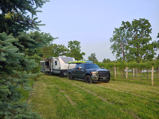 Cedar Valley Winery was a very nice, quiet little winery tucked back off a dirt / gravel road. The place where we parked our RV was across the street from the winery in their vineyard. After pulling in and talking with one of the owners we were shown where we could park and were given options of a couple different locations with the vineyard across the street being the quietest and most secluded. We decided to opt for the vineyard and after setting up we walked across to the winery to try their wines. This particular time they were low on their wine selection and so we really only had 2 types to choose from.